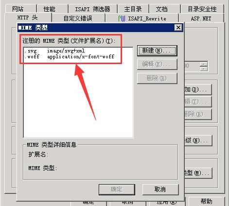 5、點(diǎn)擊新建,正確的mime信息應(yīng)該是這么寫: