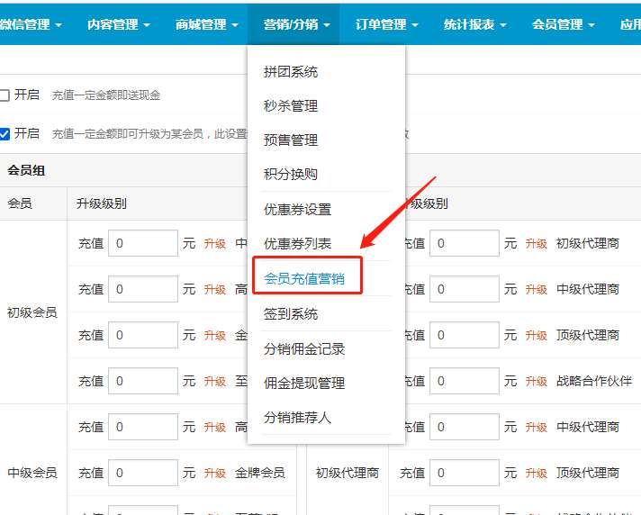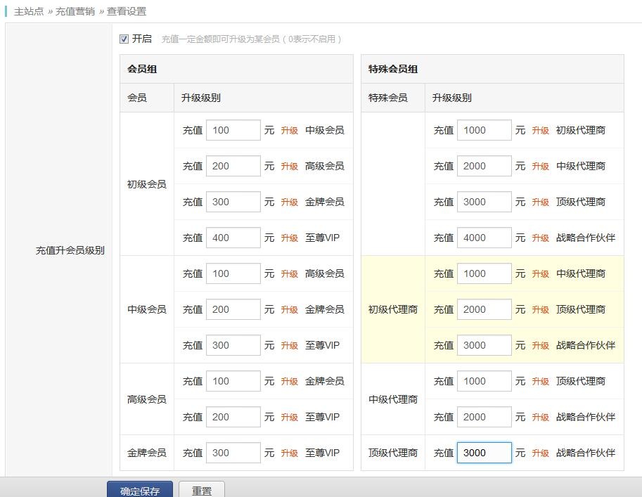 網(wǎng)站后臺可以設(shè)置充值金額,升級會員級別