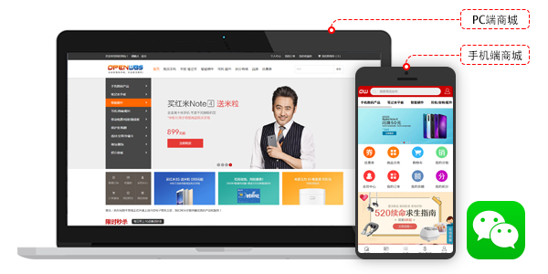 PC端商城 + 手機(jī)商城 + 微信商城 + 人人分銷 + 企業(yè)品牌官網(wǎng) + 微官網(wǎng)